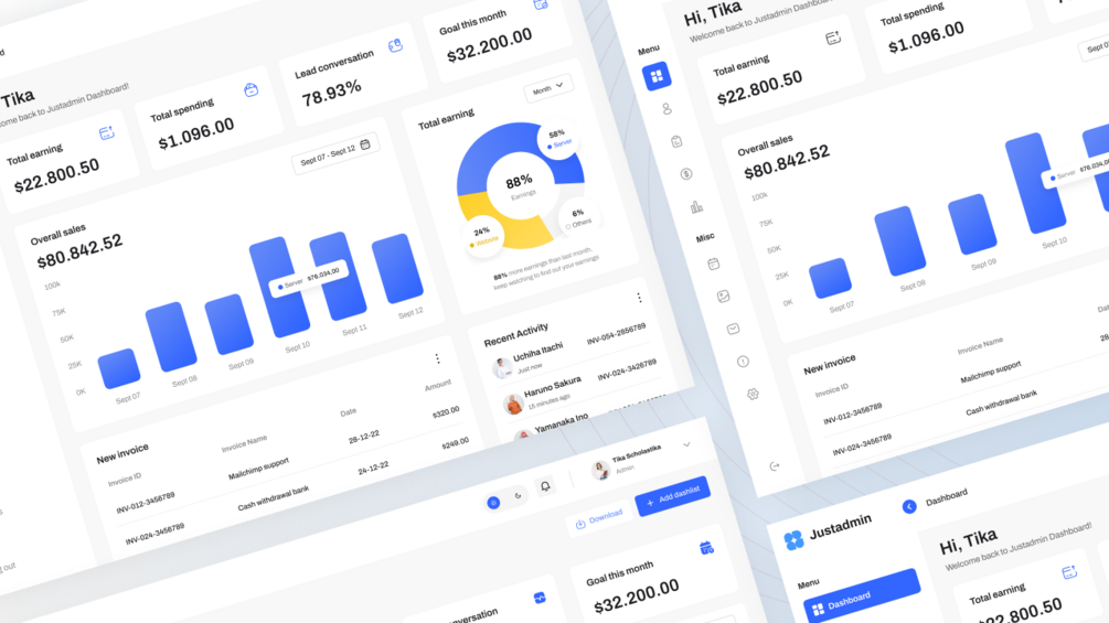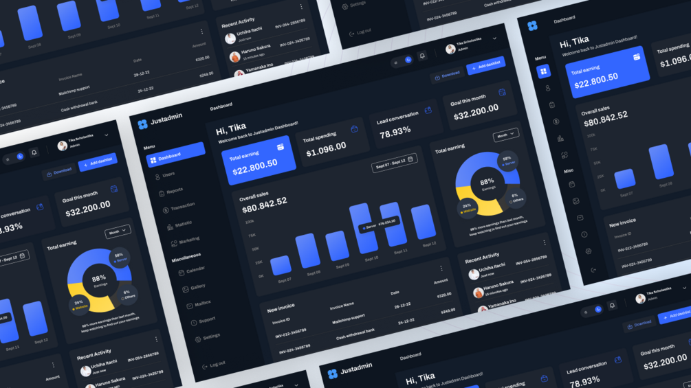 Justadmin is High Quality Admin Finance - Dashboard & Landing Pages. This template can be used as your next UI design project, personal exploration and for your clients.